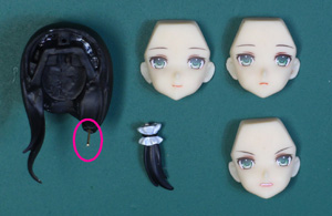 雨嘉の目のプリントは「Mr.ツールクリーナー」を綿棒しみこませて 拭き取れば簡単に剥がれます。 乾かした後、デカールを貼ってください。 雨嘉の左髪は簡単に外れます。 付属の0.5ミリ真鍮線を適度にカットし 0.5ミリの穴を開けて繋いでください。 画像はサムネイルです。クリックすると大きい画像で表示します。 |