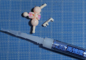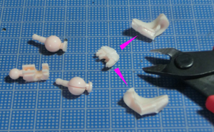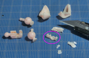 カッターナイフで関節パーツ以外の部分を切り取ります。 画像はサムネイルです。クリックすると大きい画像で表示します。 |