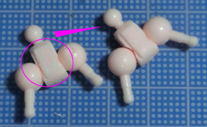 | 04 | バラしたのピコニーモの可動軸を使用します。 腰関節がユルい場合は 72項に腰関節を固くする方法がありますので、このタイミングで 修正を行なってください。 画像はサムネイルです。クリックすると大きい画像で表示します。 |