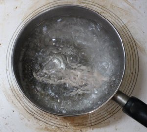 | 02 | 火傷に注意して、ラジオペンチで鍋から出します 湯煎すると、スポスポ、関節が外れます。 画像の状態にします。 画像は全てサムネイルです。クリックすると大きい画像で表示します。 |
